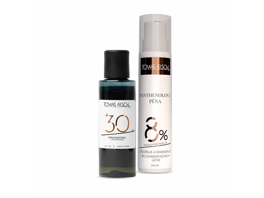 Olej na opalování s vysokou ochranou a pěna pro zklidnění a aktivní regeneraci po opalování. Ideální kombinace pro pobyt na slunci bez starostí. Olej na opalování s Astaxanthinem pokožku chrání proti spálení i proti předčasnému stárnutí pleti, vyživuje ji a hydratuje. Panthenolová pěna pokožku zklidní, vyživí, regeneruje a hojí.